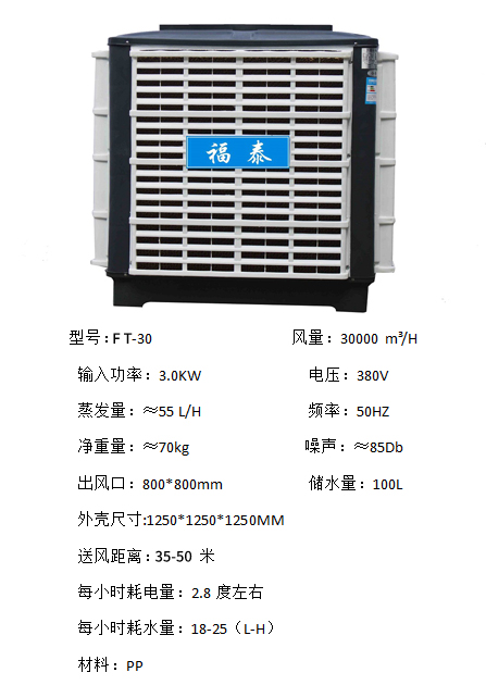 福泰環(huán)??照{(diào)性能穩(wěn)定在越炎熱的天氣下降溫的效果越好。適用于開敞式及半開敞式環(huán)境,能夠直接輸送自然風(fēng)及輸送降溫后的涼風(fēng)。室外新鮮空氣經(jīng)福泰蒸發(fā)式冷氣機(jī)過(guò)濾、降溫后向室內(nèi)源源不斷的大量輸送,將室內(nèi)帶有異味、粉塵和混濁悶熱的空氣排出室外,同時(shí)兼顧換氣降溫及增加空氣含氧量等多種效果。